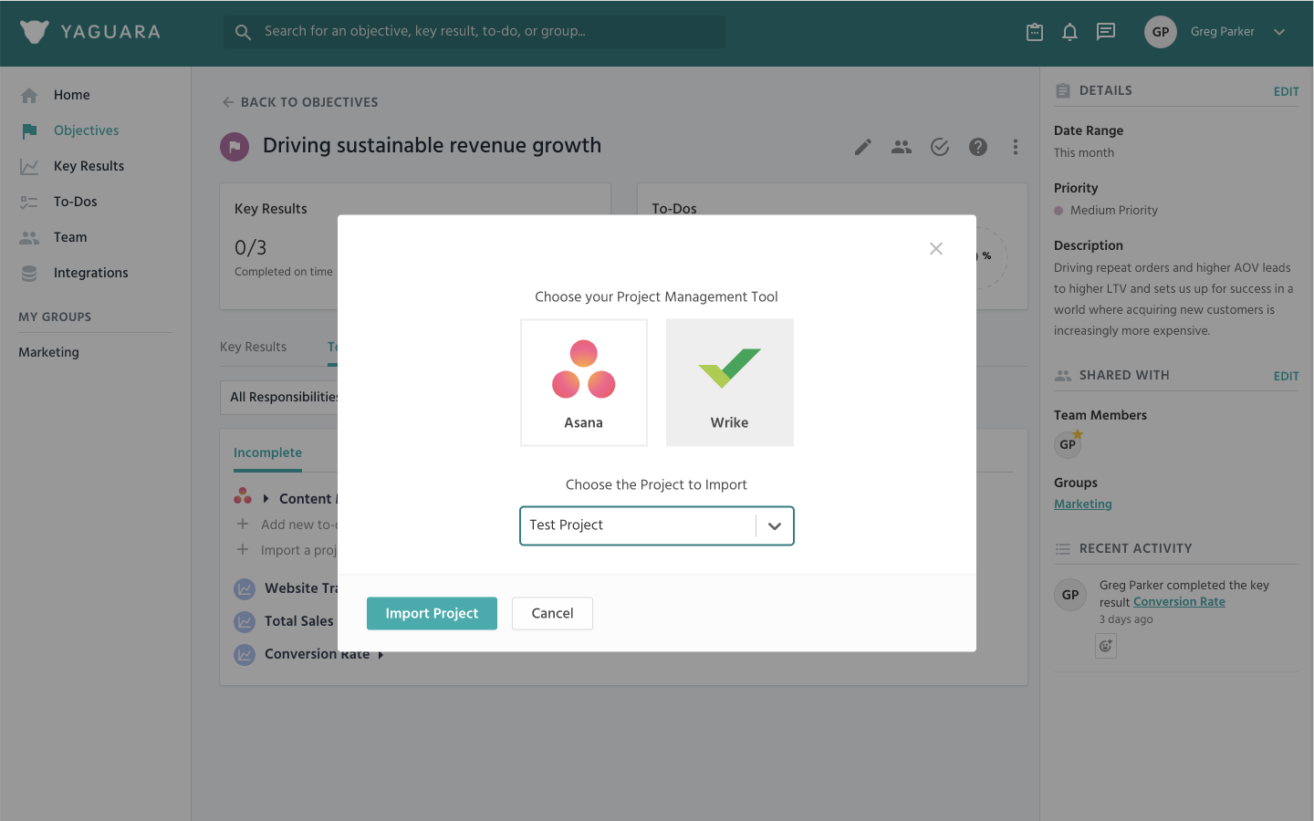 In order to import projects and created synced to-dos you must first connect your Wrike account.