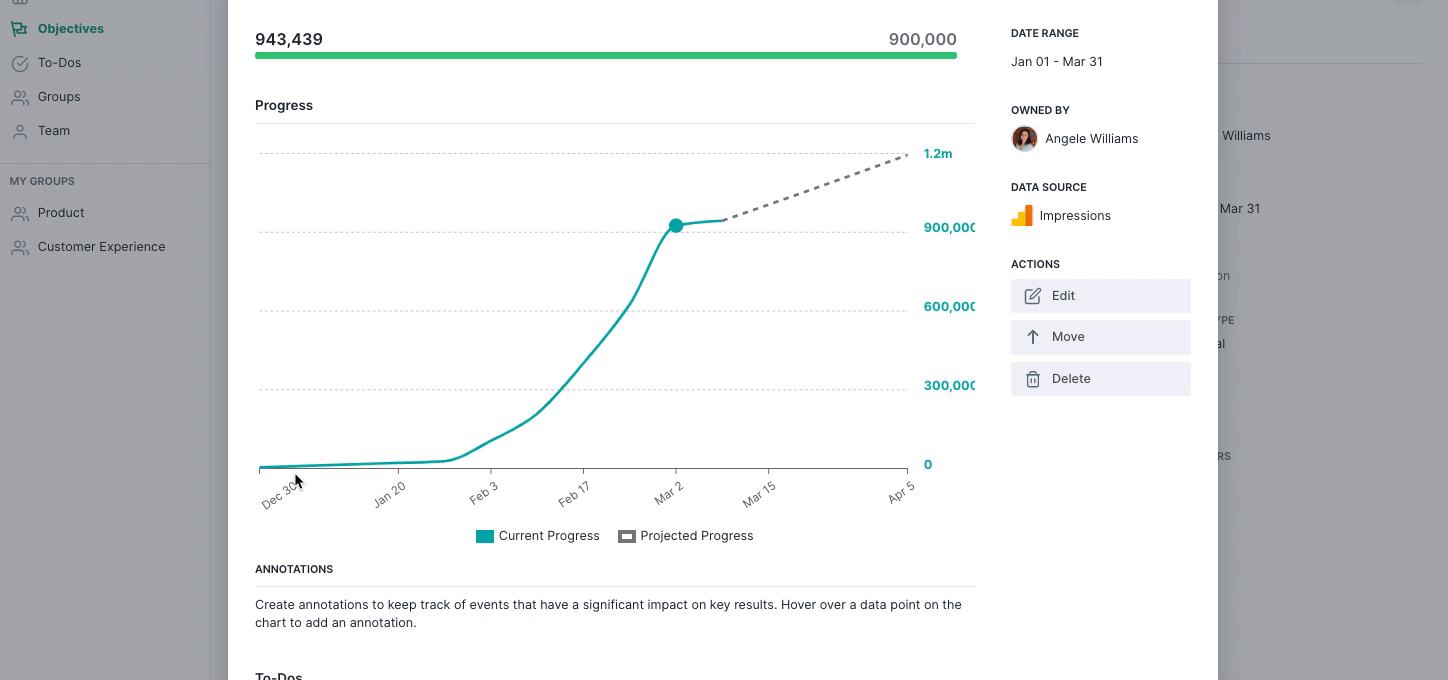 Annotations allow you to keep track of events that have a significant impact on your key results.
